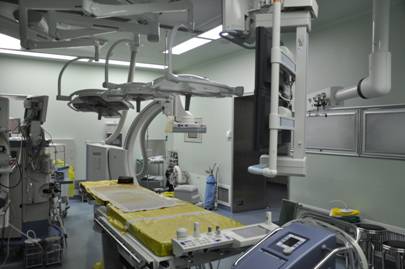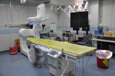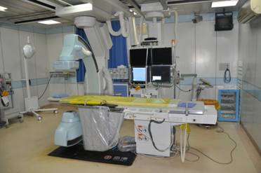 为了广大患者提供优质的服务。目前介入导管室拥有大型血管造影机12台,包括西门子AIXIOM Artis dBC一台、AIXIOM Artis zee floor两台、AIXIOM Artis zee两台、飞利浦Xper FD10三台、FD20/10一台、FD20一台、GE INNOVO2100一台、岛津Safire Plus一台。血管内超声机(IVUS)三台,光学干涉血管内成像系统(OCT)两台,血流储备分数检测仪(FFR)等一系列世界最先进心血管介入仪器设备。