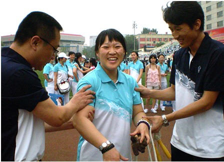最让人感动的是中德实验室的张竞宇,她负责摇绳。由于之前的刻苦训练,造成了肩部肌肉拉伤,但比赛时她却能忍着剧痛保持摇绳时的节奏和速度,最终顺利完成任务。她这种精神得到了大家赞赏和鼓励的掌声这是科研人对工作认真和负责到底的具体体现。虽然没有进入前三名,但为集体荣誉而战的精神可嘉,为我们基础总支发扬团队精神树立了榜样。