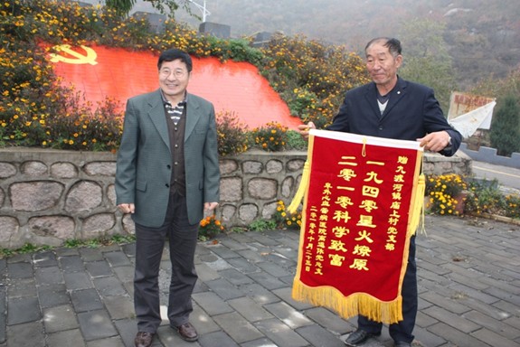 在简短的发言后,25名老党员又参观了庙上村 “第一党支部纪念馆”,纪念馆建筑面积3000平方米。包括展厅、党支部创建人高万章同志塑像和广场三部分。展厅为仿古式建筑,内设文字、图片资料展板和实物展示,重现了怀柔区革命斗争年代的硝烟烽火,大家再一次受到了洗礼。最后离退休老党员们在广场鲜红的党旗下由丑承璋副书记领誓重温入党誓词。最后丑书记还代表阜外医院离退休党总支向庙上村党支部赠送锦旗,锦旗的内容是: