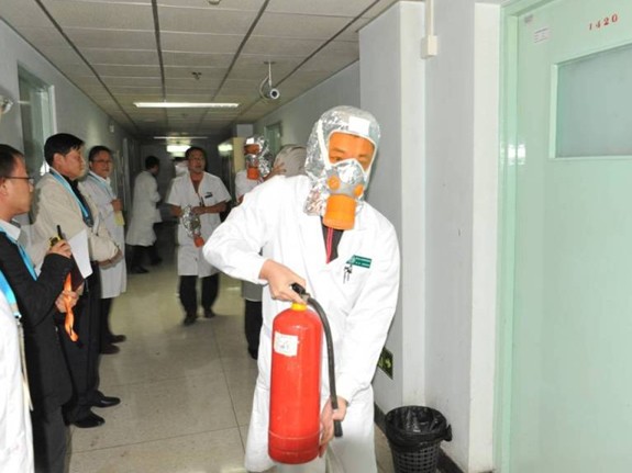 作为全国知名的心血管病专科医院,消防安全工作一直是我院日常工作的重点。2010年9月,基础党总支积极响应院所“创先争优活动”的号召,本着干实事、出实绩的原则,从科研管理工作的实际出发,针对科研楼实验室消防安全管理工作的特点,在院党委、院所主管安全的领导以及保卫处的大力协助和支持下,在国庆节前率先在病理与生理实验中心组织了一场消防安全演习,目的是锻炼实验室人员在遇到突发火灾情况下的应急能力,防患于未然;其次,是通过模拟演练,发现安全管理存在的问题和漏洞,及时补救,为实验室制定实用与可行的“消防安全应急预案”提供可靠依据。