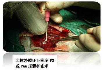 室间隔完整的肺动脉闭锁(pulmonary atresia with intact ventricular septum,PAIVS)是一种较为少见的动脉导管依赖性先天性心脏病。患儿病情危重,随着动脉导管的闭合,患儿常常难以维持生命,需要急诊或尽早手术治疗。2OO5年以来,我科在国内率先开展了在非体外循环下结合介入手段的“杂交(hybrid)”技术治疗新生儿或小婴儿PAIVS,开创了我国治疗先心病的新思路,新方法。我们利用介入下使用的球囊扩张器械,开胸后在心表超声的引导下经右室流出道对呈膜性闭锁的肺动脉瓣进行扩张,然后实施改良Blalock-Taussig体肺分流术,有效缓解患儿危重病情,提高了患儿氧供,取得了较好的临床疗效。该技术不用体外循环,有效避免了体外循环并发症,患儿术后恢复快,呼吸机辅助时间及ICU治疗时间均显著缩短,降低了手术死亡率,提高了患儿生存率,治疗费用显著下降。