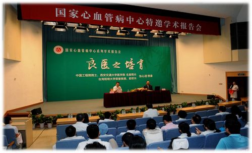 2012年6月6日上午,中国工程院院士、西安交通大学医学院名誉院长、台湾阳明大学荣誉教授、前校长张心湜院士在我院报告厅作了题为《良医之培育》的精彩学术报告。胡盛寿、李惠君等院领导,医护人员、研究人员、管理人员以及研究生400余人参加。报告由胡盛寿院所长主持。