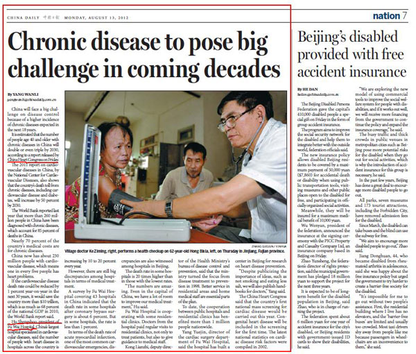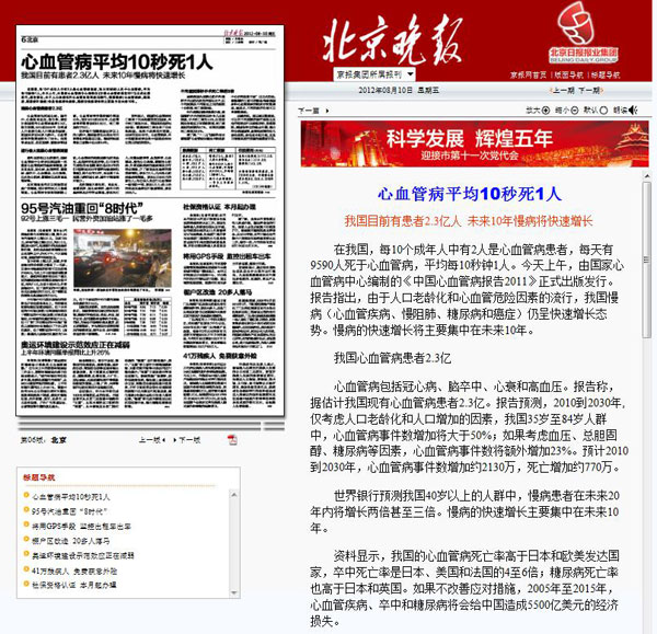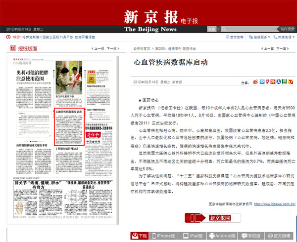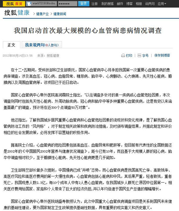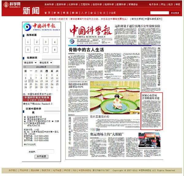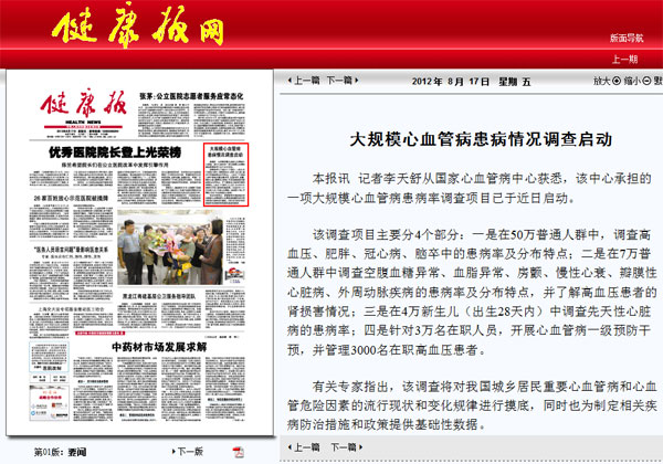 中国科学报:我国启动最大规模心血管病患病情况调查