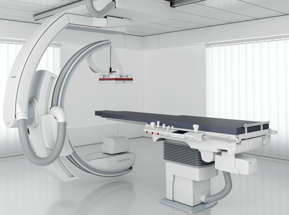 优点:悬吊血管造影系统运动灵活,术中无需移动病人即可完成冠心病介入手术、瓣膜疾病,小儿先天性心脏病的诊断与治疗,超低的辐射剂量可以使细小血管高清成像,提高手术效率,带给患者特别是儿童更加全面的保护。