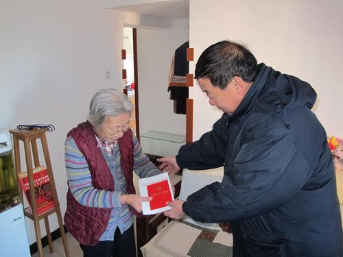 离退休党总支为离休老干部,原党委书记陈德林同志送去新党章、十八大报告及辅导材料
