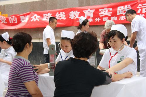 2013年8月24日,在我院党委、团委的大力支持下,在吴永健主任、方丕华主任、尤世杰主任、浦介麟主任的精心安排下,内科22、23病区党团员及志愿者来到了北京市西城区展览路社区开展为期半天的义诊活动。此次活动的义诊队伍由22、23病区的医疗专家、业务骨干以及入党积极分子、专科护理人员共同组成。