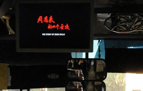 在前往纪念馆的路上,集体观看《周恩来的四个昼夜》,学习伟人精神