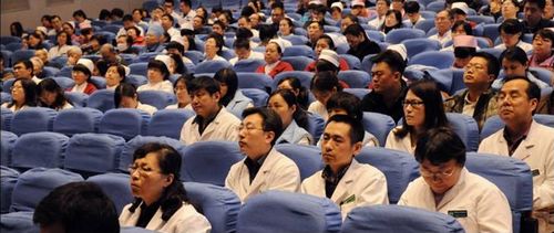 医院领导班子成员、共产党员和入党积极分子近450人参加了学习会
