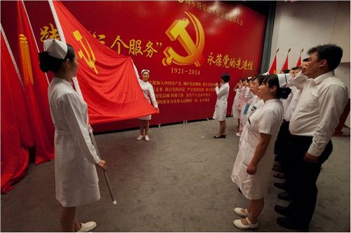 在党政办公室陈宣男主任助理的领誓下,医院2013-2014年度发展的19名新党员进行了庄严宣誓