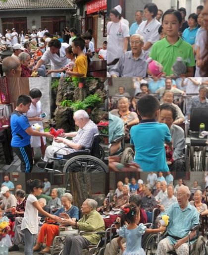 8月29日,中秋节到来前夕,我院工会常务副主席高虹,工会副主席、全国劳动模范周宪梁主任和代理团委书记李琴带领医护人员、医护人员子女以及团员一行二十余人前往鼓楼敬老院进行志愿服务活动,得到了敬老院老人们的热烈欢迎。