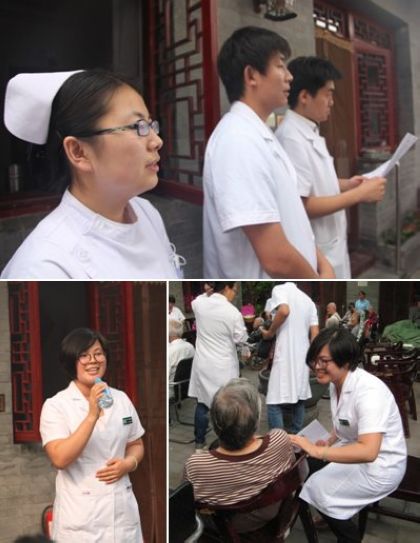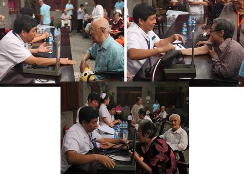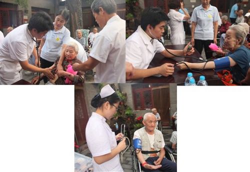 活动期间,周宪梁主任对患有高血压的老人给予了现场医学指导,再三嘱咐他们要多注意饮食习惯,并仔细询问了老人们的身体健康状况,针对老人的病情给出明确的治疗用药方案。住院医师雷白与其他医务人员一起为老人们进行量血压、心肺听诊等常规检查项目,耐心细致地与老人们交谈,嘱托他们注意卫生饮食保健,并针对夏秋交替季节容易引发的常见疾病,对老人们进行耐心详解。针对关心照顾老人日常生活的注意事项,我院医护人员还对敬老院服务人员给予了一些专业性的建议。小朋友们也跟着妈妈们一起为老人们进行体检,用实际的行动去体验我国尊敬老人的优良传统,温馨愉悦的笑声、歌声在院里回荡。