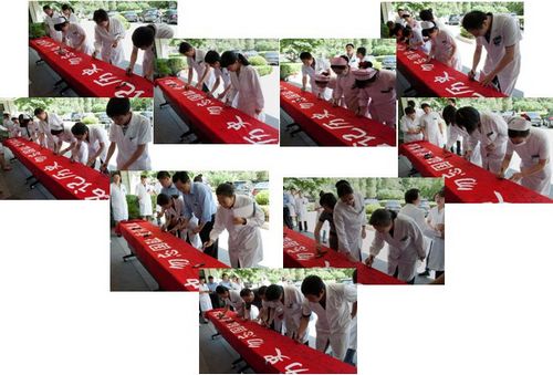院领导、各党总支书记、近千名职工、学生以及部分患者和家属参加此次签字活动