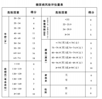 什么样的人需要去医院进行口服葡萄糖耐量试验呢?可通过“糖尿病风险评估量表”,回答表上的6个问题,即年龄、性别、腰围、体重指数、收缩压和糖尿病家族史,就能计算出自己的患糖尿病风险评估总分。超过25分的人,就表示糖尿病风险很高,应进行口服葡萄糖耐量试验。