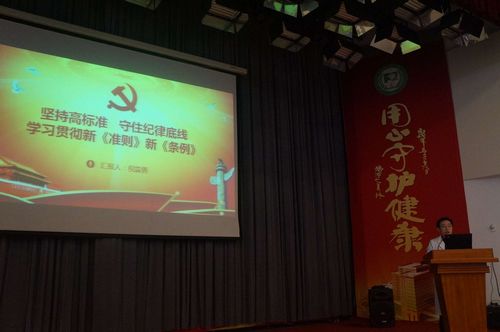 会上,纪检监察处处长倪震勇同志作题为《坚持高标准 守住纪律底线 学习贯彻新<准则>新<条例>》的报告。倪震勇同志紧密联系实际,报告从修改背景入手,对《中国共产党廉洁自律准则》和《中国共产党纪律处分条例》进行重点解读,在强调其重要意义后对如何扎实践行贯彻新《准则》《条例》深入讲解。