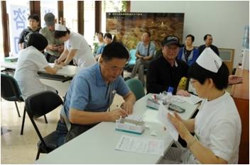 为响应国家卫生计生委《“服务百姓健康行动”全国大型义诊活动周实施方案》号召,结合北京市大型义诊活动周要求,阜外医院于2015年9月14日至19日,在报告厅开展全天院内义诊周活动。这次活动共由4位医生、6名护士、10余名党员及团员组成的志愿者共同参与,共计为397位患者义诊。