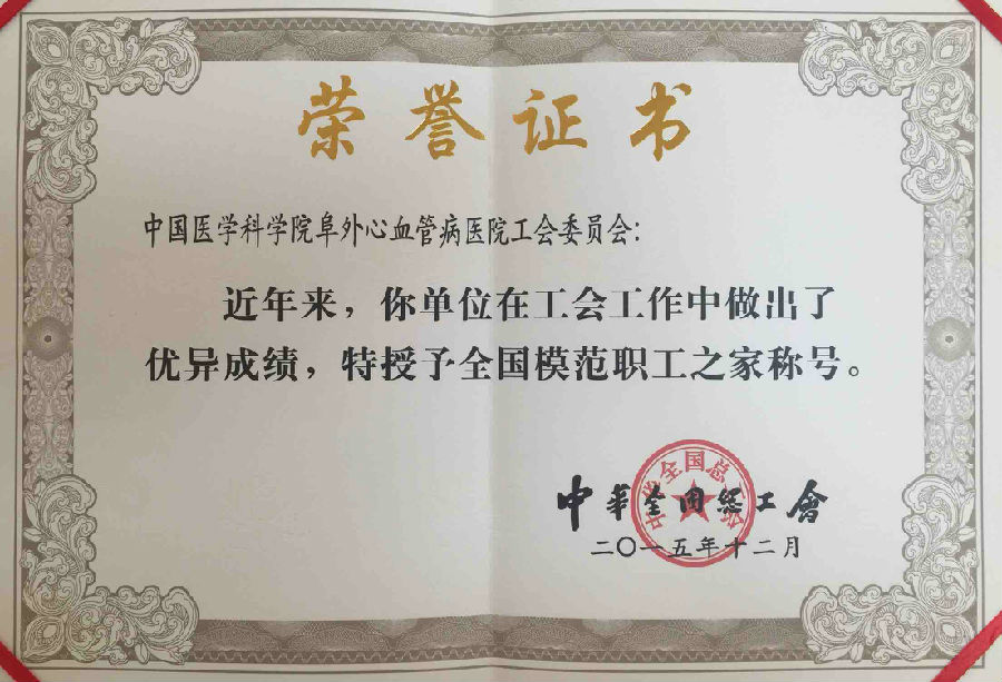 2015年12月,根据总工发[2015]38号文件,院工会被全国总工会授予“全国模范职工之家”,该称号是中华全国总工会授予基层工会组织的最高集体荣誉,全国仅有17家单位获此殊荣。