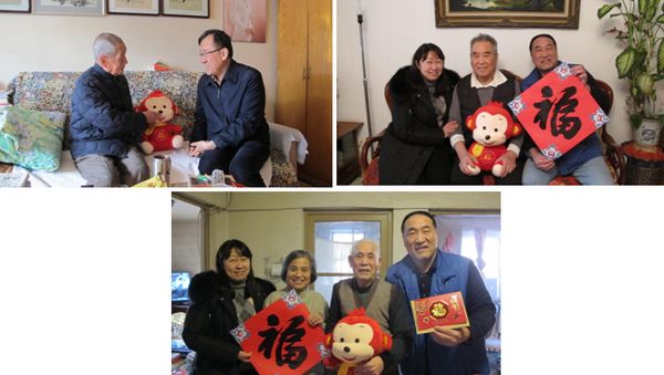 猴年春节前夕,医院党委书记李惠君、副书记王峥带领医院工会、离退休管理处,走访慰问了王志远、陈德林、赵永斌等离休老领导,朱晓东、高润霖、薛淑华等市(省部级)劳模、先进工作者,全国先进工作者周宪梁,张英珊等学科创始人及老党员、离退休患病职工等,转达了北京市教育工会及院校工会的关怀,并代表医院党政领导,向他们致以新春的问候,送去美好的祝福。