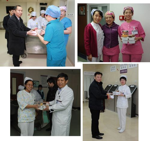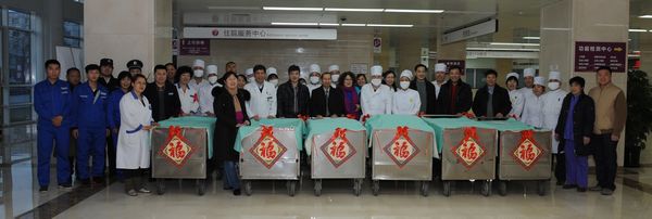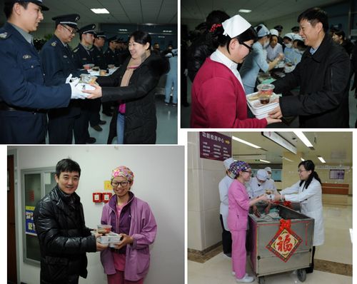 秉承阜外的光荣传统,2月7日除夕,医院党委副书记、纪委书记、工会主席王峥,副院长顾东风、李庆印,院长助理郑哲,总支书记熊辉、李影,工会副主席周宪梁、杨浩国,党政办公室、团委、医务处、护理部、行政后勤处、保卫处、二部办公室领导代表一行14人,代表医院党、政、工、团各级组织,为春节期间坚守在医院工作岗位的所有员工,送上职工食堂精心准备的“阜外”年夜饭,表达最真挚的节日慰问和祝福,对他们放弃春节与家人团聚,仍然坚守在工作岗位,护卫患者健康,保障医院安全进行感谢。一句朴实的“辛苦了”、“过年好”,让节日在岗员工们感受到了“阜外”大家庭的温暖和幸福。