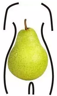 梨形身材的女性肩窄、腰细、臀宽、大腿丰满。脂肪主要沉积在臀部及大腿,上半身不胖下半身胖,状似梨形。