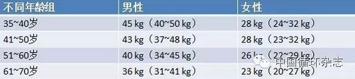 表1 中国人群不同年龄男性和女性平均握力参考范围