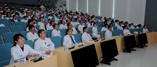 胡盛寿、李惠君等中心、医院领导班子成员,各党总支、党支部书记,医院班组长以上中层干部共计300余人参加此次会议