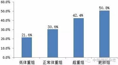 注:低体重定义为体重指数(BMI)<18.5kg/m2,正常体重为BMI在18.5~23.9kg/m2,超重为BMI在24.0~27.9kg/m2,肥胖为≥28.0kg/m2