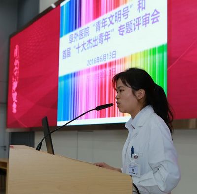 医院团委书记李琴主持了此次会议。她强调,“青年文明号”是医院青年集体的最高荣誉,“杰出青年”是医院青年人的最高荣誉。前期经过6个党总支的酝酿和遴选,来自内科、外科、门诊影像、西山、机关、后勤的9个候选集体和18名候选人进入到今天的专题评选活动中。