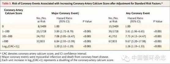 而且这类患者的主要心血管事件(心脏病发作或死于冠状动脉心脏病)的发生风险是钙化积分为0分者的有7倍。