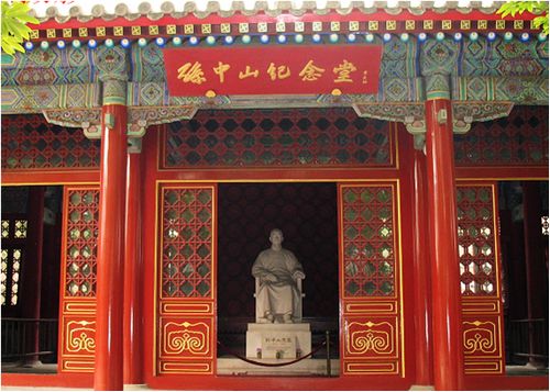 这里曾是皇家的离宫别苑,有当时名噪一时的“香山二十八景”,却先后遭英法联军和八国联军焚毁,这些遗留下来的景致,都是历史的见证,时刻提醒我们勿忘国耻。在香山碧云寺内,有一个庄重而严肃的纪念堂:孙中山纪念堂。孙中山因病逝于北京,弥留之际,他提及国事的遗言是“和平奋斗救中国!”,这位在风卷残烛之际仍旧记挂祖国安危的老人,一生都在为改革而奋斗的勇士,值得我们每一位青年永记心间。