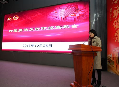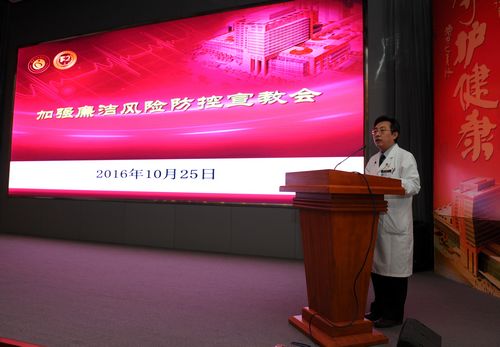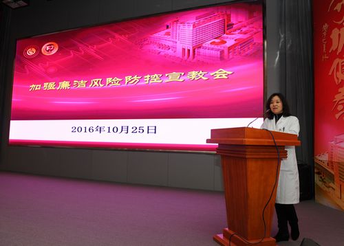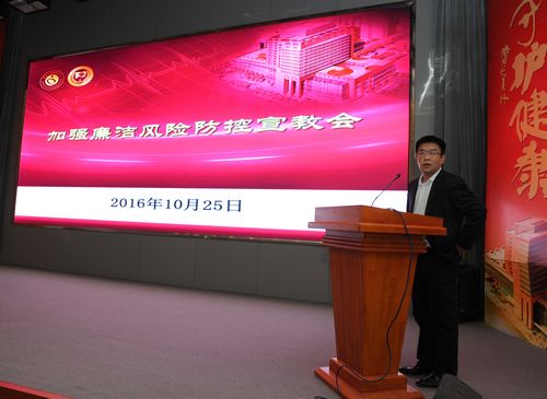为贯彻落实《“健康中国2030”规划纲要》,迎接2017年大型医院巡查及医院高速发展的挑战,进一步深化治理医疗卫生领域商业贿赂,加强廉洁风险防控,10月25日上午,由我院纪检监察处牵头,联合设备处、物资供应处、药剂科召开了供应商廉洁风险防控宣教会。纪检监察处处长倪震勇、药剂科主任郑英丽及来自全国的设备、物资耗材、药品试剂供应商及业务代表共250余人参加了会议。会议由纪检监察处李玉丹同志主持。