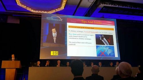 日前,阜外医院血管外科中心主任舒畅教授应前国际血管外科学会(ISVS)主席、美国克利夫兰医学中心Frank Veith教授邀请,连续第六年作为国际Faculty Member出席第43届Veith Symposium大会,并于大会首日上午8点40分在主会场作题为“Tips and tricks to make chimney (Ch\TEVAR) in the Aortic arch successful”专题报告,与国际顶级大血管外科专家Safi和Cosselli等一同在此大会主会场黄金时段场次作报告。