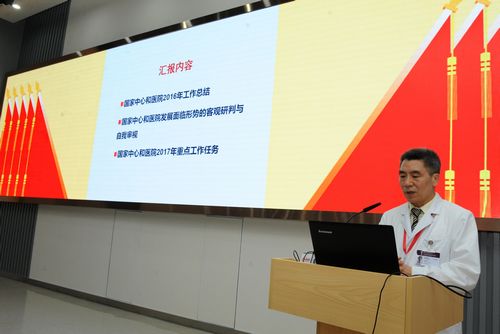 国家心血管病中心主任、阜外医院院长胡盛寿同志做《认清形势,顺势而为,全力推进心血管医学中心建设再上新台阶》报告
