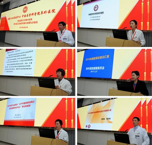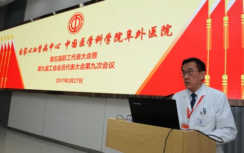 正式大会由执行主席、医院工会主席王峥同志主持。会议首先由国家心血管病中心主任、阜外医院院长胡盛寿同志做《认清形势,顺势而为,全力推进心血管医学中心建设再上新台阶》报告;其后医院总会计师、财务处处长王晓飞同志做《2016年度财务分析报告及2017年财务预算报告》;医院总审计师杨锦彤同志做《2016年财务决算、2017年财务预算审计报告》;工会主席王峥同志做《2016年工作总结和2017年计划要点》及《工会2017经费总体预算》报告;工会经审委员会主任王晓飞同志做《2016年工会经费收支情况审查报告》;工会提案委员会主任李卫同志做《2016年提案落实情况报告》;事业发展处处长陶玉秀同志做《以PPP模式搭建西山科技成果转化平台》报告;科研处处长荆志成同志做《中国医学科学院阜外医院科技成果转化暂行管理办法》报告。