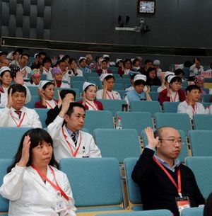 医院工会副主席周宪梁同志主持预备会议,与会代表一致举手表决通过大会各项议程。