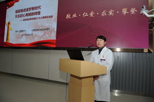 医院研究生、离退休、后勤、机关、西山园区、门诊影像、内科、外科8个党总支代表分别上台作交流发言。他们结合自身岗位,理论联系实际,从医疗、科研、教育、人才培养、管理、党建等各方面谈到了学习十九大精神的体会,也谈到了自己的理想与奋斗目标。大家纷纷表示,听完习近平总书记在党的十九大上的报告后,备受鼓舞,催人奋进。通过学习十九大精神,再次领悟到中国共产党的优越性和创造性。没有全民的健康就没有全面的小康,健康中国战略的实施,对于医疗机构,特别是心血管疾病防治的“国家队”,意味着更多的机遇与挑战。作为阜外医院的一员,要把人民健康放在优先发展的战略地位,全方位、全周期保障人民健康,早日实现阜外梦、健康梦、中国梦。
