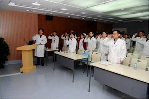 机关党总支广大党员和入党积极分子在总支书记、院长办公室主任胡洋同志的带领下,重温入党誓词,面对党旗庄严宣誓。