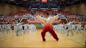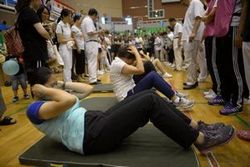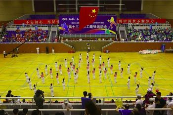 王峥主席宣布运动会正式开始。由离退休管理处43名老干部及工会心韵歌舞协会49名职工精心准备的太极拳和健身操表演拉开了运动会序幕。老干部们精神矍铄,健身操表演动感十足,律动的节奏掀起了“阜外人”的运动热潮。表演的“心”造型,表达了医院“用心守护健康”的核心理念,也表达了“阜外人”对医院的美好祝愿。