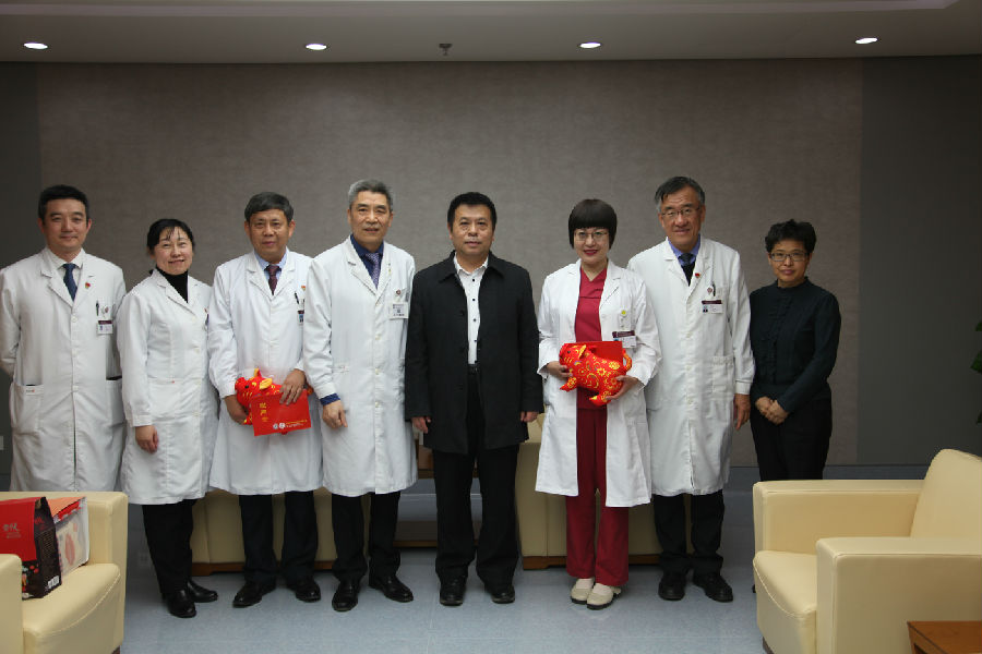 2019年1月31日,北京市卫生健康委员会党委书记、主任雷海潮一行来我院慰问全国道德模范、全国劳模、首都十大健康卫士、白求恩奖章获得者周宪梁。医院院长胡盛寿,党委书记、副院长李惠君,党委副书记兼纪委书记、工会主席王峥,副院长郑哲,全国卫生计生系统先进工作者、首都健康卫士、小儿恢复室主任王旭等参加了此次慰问活动。