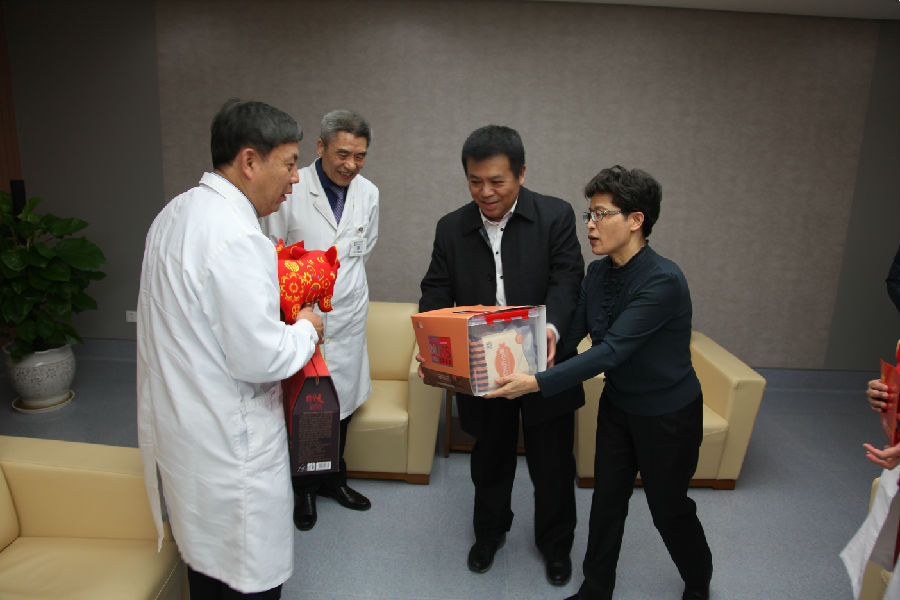 北京市卫生健康委员会党委书记、主任雷海潮向周宪梁主任颁发慰问品,向他送去党和政府的关怀以及社会各界的关心,同时致以新春问候和亲切祝福。同时,胡盛寿院长与李惠君书记代表医院,向两位模范人物送去了新春慰问。