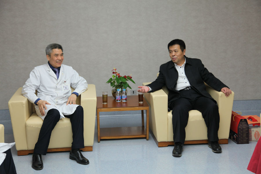 雷海潮主任与胡盛寿院长亲切交谈,雷海潮主任为医院发展提出殷切希望。