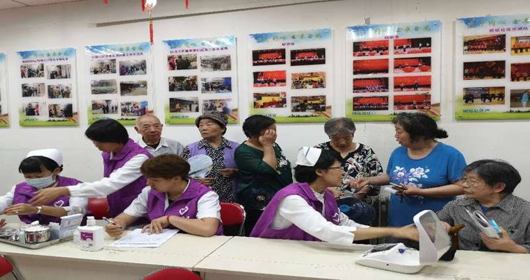 活动于下午14点正式开始。经过服务队前期认真的宣传,展览路社区居民纷纷闻讯赶来参加活动。活动的第一环节为党员志愿者们为社区居民免费测量血压、血糖,其中不乏出现血糖异常居民,义诊医生均认真询问病情,耐心解答疑惑,并督促个别血糖较高居民及时到医院就诊。志愿者热情耐心及专业的态度赢得了居民的一片赞赏。