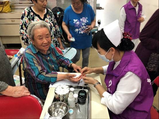 王宣护士长为社区居民进行了《血糖仪,您会正确使用吗?》的讲座,在场听众积极发问,护士长进行了耐心细致的解答和专业的技术指导,纠正了糖尿病患者对于血糖仪多年的使用误区。