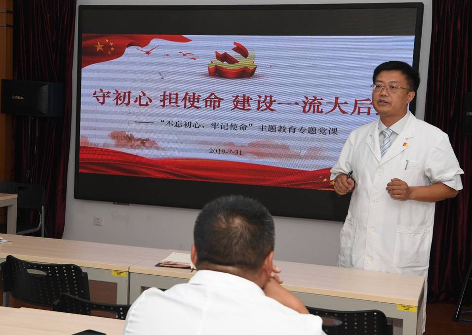 为深入贯彻落实“不忘初心、牢记使命”主题教育,7月31日,职能部门五支部召开“守初心、担使命、建设一流大后勤”主题教育党课,由分管院领导李志远副院长进行讲授,参会人员三十余人。