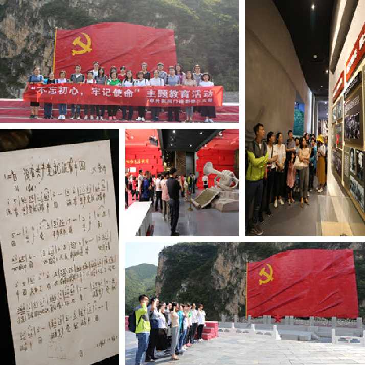 下午, 全体党员和团员来到霞云岭“没有共产党就没有新中国”教育基地。1943年10月,在革命最困苦之际,时年19岁的党员曹火星在此创作脍炙人口的《没有共产党就没有中国》,歌曲伴随着中国革命的成功唱遍了全中国,也最终迎来了革命胜利的曙光。我们在讲解员的带领下参观了“没有共产党就没有新中国”纪念馆,重温红色历史,分别参观了“历史回响,人民心声”“深山里飞出不朽的歌”“让心中的歌代代传唱”三个展区。800幅历史图片,运用文字、摄影、绘画、浮雕、蜡像、幻影成像等艺术手段,向后人昭示了没有共产党就没有新中国和只有共产党才能团结带领人民前进这一历史事实,实地感受到新中国的来之不易和中国共产党领导人民创建新中国的艰辛。