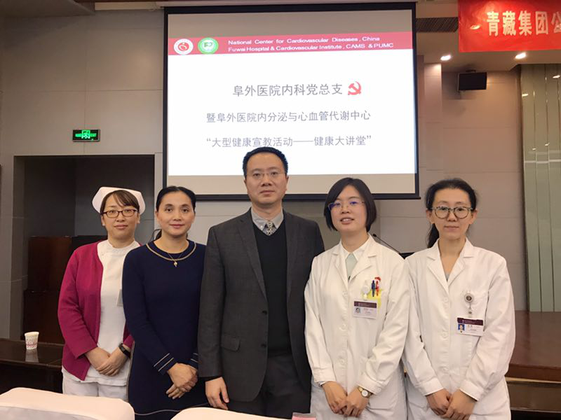宣讲对象是青海集团公司的同志们,由于他们的工作地点主要分布在青海和西藏,其中有相当一部分人患有高血压,高血脂,高血糖,因此,针对这些问题,此次宣教内容主要围绕“胸痛的甄别和处理”“血脂知识科普”“糖尿病防治”等方面展开。