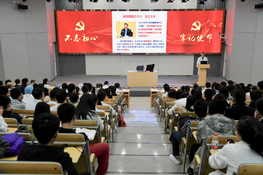 胡盛寿院长围绕“教育是国之大计、党之大计”、“实现“两个一百年”奋斗目标,实现中华民族伟大复兴,归根结底靠人才”、“培养什么人、怎样培养人、为谁培养人是教育事业的根本问题”、“新时代下教育工作思路”、“教育工作要从6个方面下功夫”等内容,带领大家深入解读了习近平总书记在全国教育大会上的讲话的思想精髓。