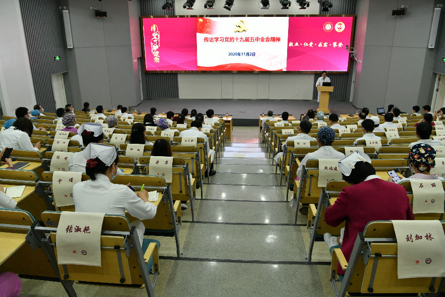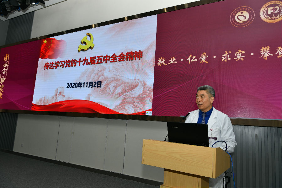 2020年11月2日,国家心血管病中心 中国医学科学院阜外医院召开主题周会,集中学习了《中国共产党第十九届委员会第五次全体会议公报》要点内容,传达学习了国家卫生健康委党员干部大会学习贯彻十九届五中全会精神会议的重要内容,并就抓好学习贯彻全会精神进行了安排部署。