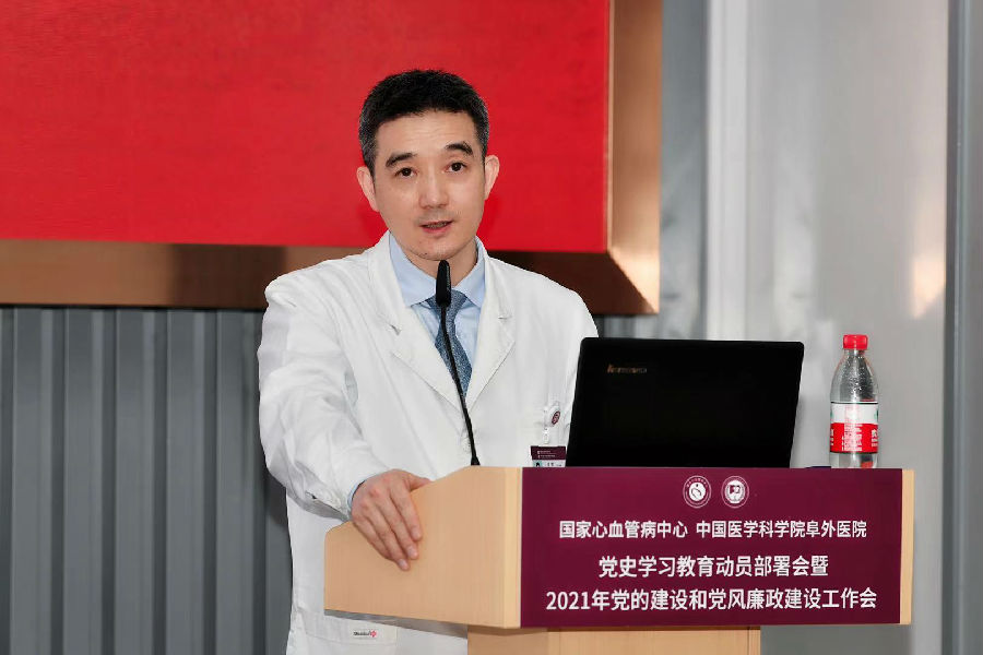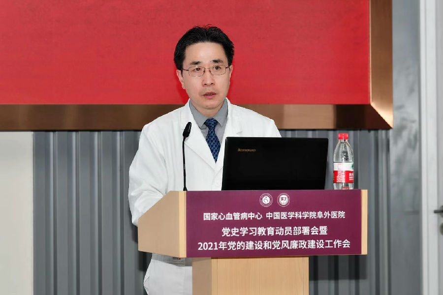 3月8日下午,国家心血管病中心 中国医学科学院阜外医院召开党史学习教育动员会暨2021年党的建设和党风廉政建设工作会。按照疫情防控要求,会议采取“主会场+分会场”视频连线直播的方式召开。班子成员、党委委员、纪委委员,党总支书记、党总支副书记、党支部书记、支部委员等全体党务干部,科室和部门负责人,民主党派代表、工会干部代表、团干部代表、党小组组长代表,共计265人参加了会议。会议由中心-医院党委副书记兼纪委书记李天庆同志主持。