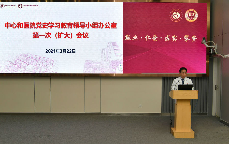 2021年3月22日,国家心血管病中心 中国医学科学院阜外医院(以下简称“中心和医院”)召开党史学习教育领导小组办公室第一次(扩大)会议,就进一步细化实化中心和医院党史学习教育动员会暨2021年党的建设和党风廉政建设工作会议精神进行了工作部署。
