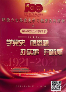 2021年,中国共产党即将迎来百年华诞,学党史、悟思行,为深入推进党史学习教育,职能六支部设立了独立的读书角,组织全体党员同志共同加入到“读党史”活动中,党员同志们在工作之余纷纷加入到党史学习中,并通过扫码打卡的形式分享心得体会。
